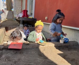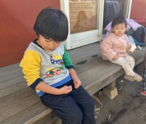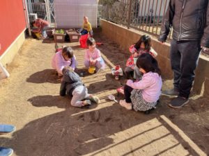 他のお友達はお庭で遊びました。