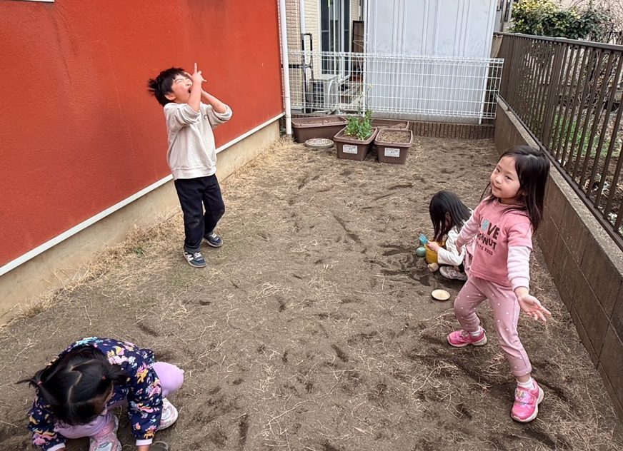 年中さんと年長さんが卒園式の練習に取り組んでる頃…他のお友達はお庭で遊びました!