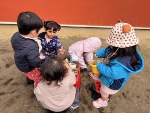 周りで砂遊びをしているお友達も自分のやりたい事に没頭中です😅