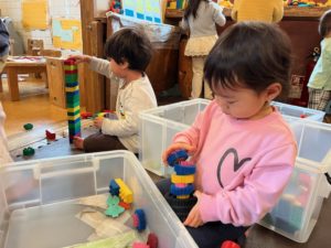 こちらも高く積み上げようと試行錯誤してました✨考えるって面白いね♪