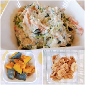 ☆ほうれん草と人参の白和え☆蒸かし南瓜☆バナナチップ