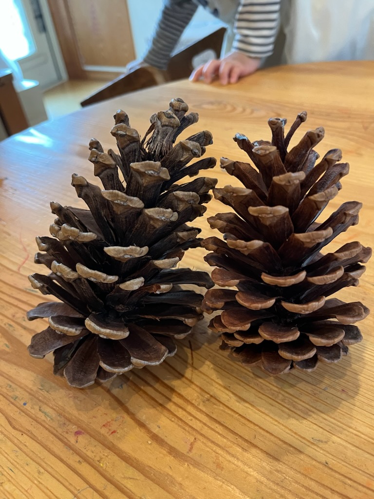 お部屋から戻ると朝の松ぼっくりがまた変化していました!