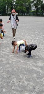 グラウンドも広く使えたので少し遠くにいたスタッフの所まで走り、じゃんけん勝負をしました。