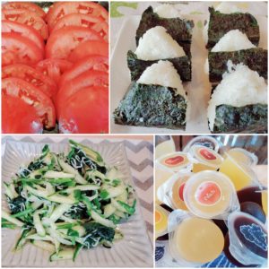 塩おにぎり ほうれん草としらすのお浸し トマト プチゼリー