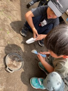 虫探しが始まりました!ダンゴムシやヤスデに大興奮の男の子達!