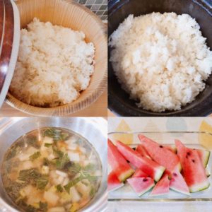☆玄米入りご飯☆白米☆大根とコーンのスープ☆スイカ