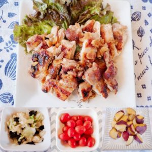 ☆チキンのソテー☆キャベツののり和え☆ミニトマト☆さつま芋煮