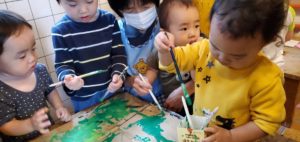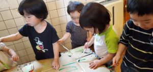 みんな集中してひたすら塗ることに真剣であっという間に終わりました😲また、道具の使い方をよく見てみると上手に筆を扱えてる子が多く細かい所まで塗り上げていました。