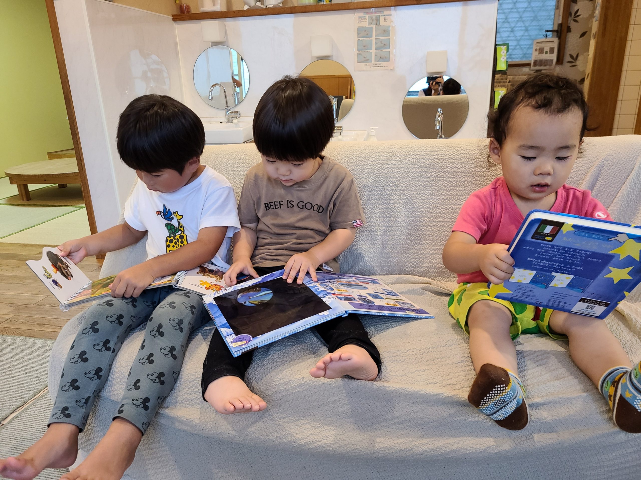 夕方3人の男の子が絵本コーナーにやってきました。それぞれの子ども達が興味のある本を選び、じっくりと読み込んでいてとてもいい雰囲気でした(^^♪