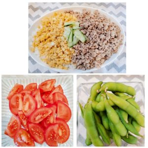☆そぼろ丼ぶり☆トマト☆枝豆