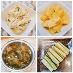 ☆ポテトサラダ☆ワカメとコーンのスープ☆きゅうりスティック☆パイナップル