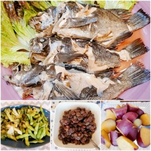 ☆メバルの煮付け☆茹でブロッコリー☆枝豆☆レーズン☆さつま芋の甘煮