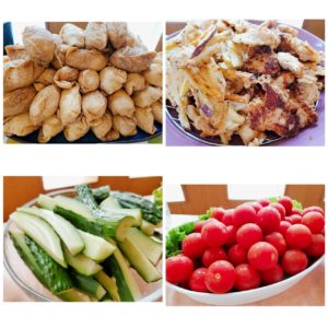 ☆おいなりさん☆かき揚げ☆とり天☆スティック野菜(きゅうり)☆ミニトマト☆スイカ☆野菜ジュース