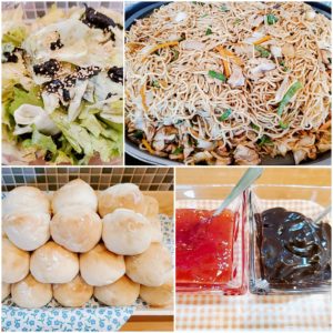 ☆焼きそば☆白パン(ジャム・チョコ)☆レタスのりサラダ