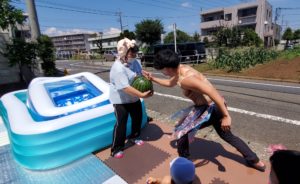 マッチョなファイヤーボーイが大きなスイカを〝えいーっ!〟