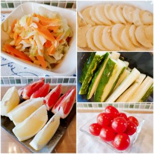 ☆キャベツのソテー☆焼きポテト☆きゅうりスティック(味噌マヨ添え)☆ミニトマト☆グレープフルーツ・ピンクグレープフルーツ
