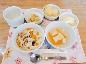 ☆野菜煮込みうどん☆豆腐のスープ☆白菜のツナ和え☆蒸かしじゃが芋☆リンゴ