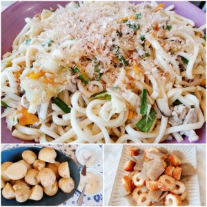 ☆スタミナ焼うどん☆蒸かしじゃが芋☆竹輪とこんにゃく炒め