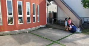【おおぞらチーム】は駐車場とお庭の草取りを毎日5分間やると決めました。お兄ちゃんお姉ちゃん達が活動している様子を窓からじーっと見ている小さい子ども達が見えますでしょうか…😊??