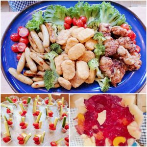 鶏の唐揚げ ナゲット ウインナー カップサラダ フルーツゼリー 野菜ジュース