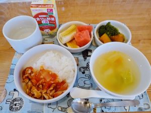 ◎野菜スープ◎南瓜の煮物◎ブロッコリー◎もずく酢◎スイカとバナナ◎カップヨーグルト