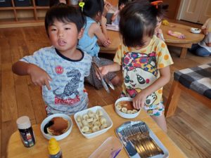 「ジュージュー」と美味しそうな音がしてまだかな~と待つ子どもたち♪