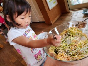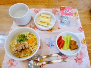 自分でよそい4種類の具の中から「これをのせて…..」と自分で選んで楽しみました♪