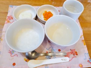 【初期】♦10倍粥♦だし汁♦人参ペースト♦豆腐ペースト