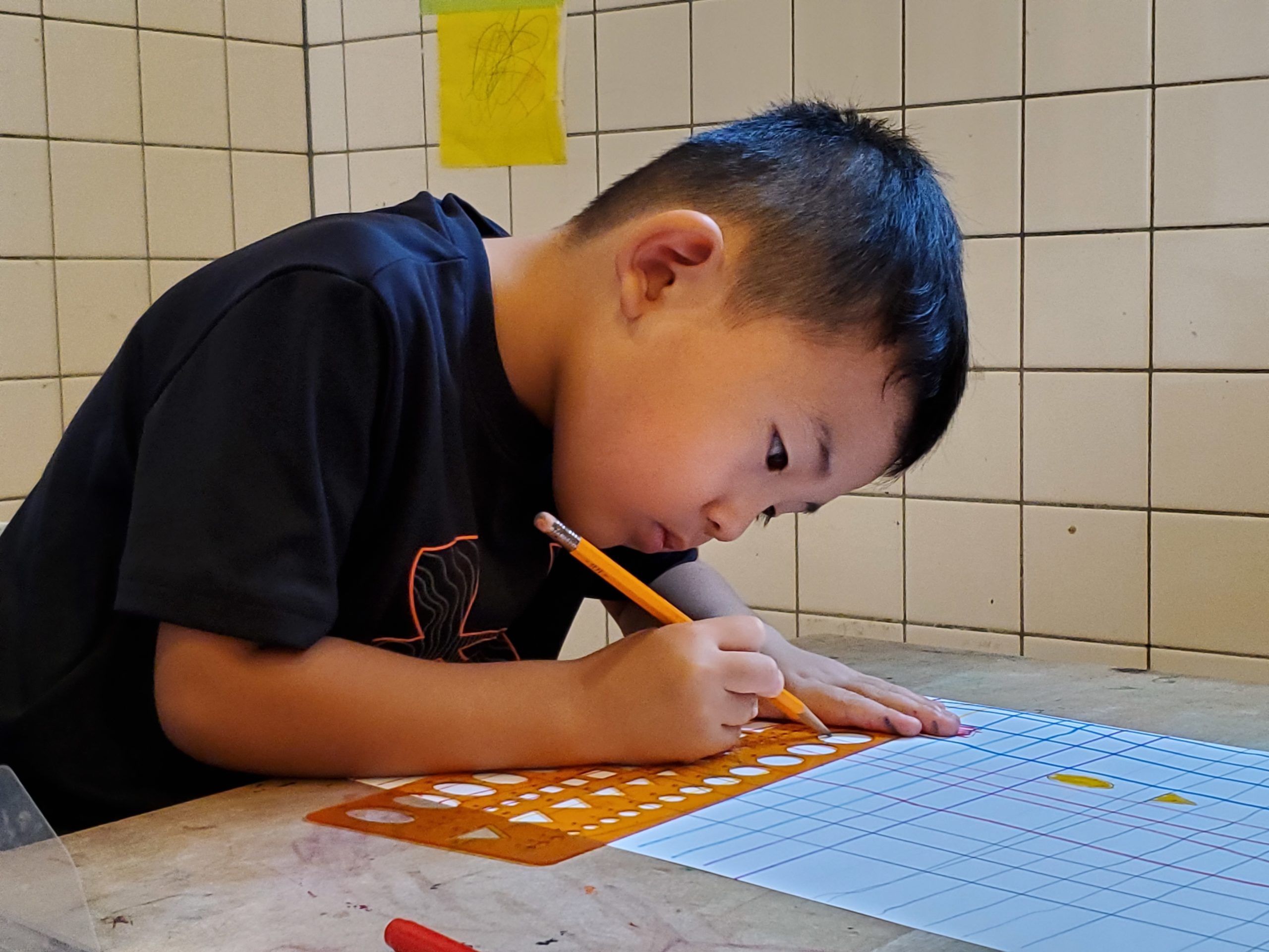 今日のアトリエ教室では、定規の使い方を学びました。コンピューターで簡単に線も絵も描ける今、道具を使って手を動かして線を引くというのはとても大切な経験ですね😊直線や斜め、何本も線を引くうちにコツを身につけてとても集中していた年中さんでした。