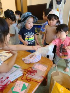 今日はねむで学童のお兄ちゃんお姉ちゃん達が屋台やさんを開いてくれました♪本当はどんぐりのお友達みんなで遊びに行きたかったのですが感染対策の為、小さい子チームと大きい子チームに別れてお買い物に行きました。