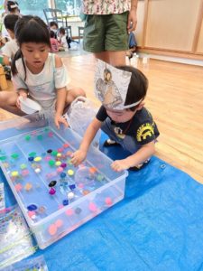 お面屋さんでお気に入りのお面をゲットした後はスーパーボールすくいにチャレンジしたよ!!