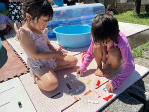牛乳パックで作った同じぐらいの大きさの魚を集めて【神経衰弱】のような遊びをしている子もいました♪