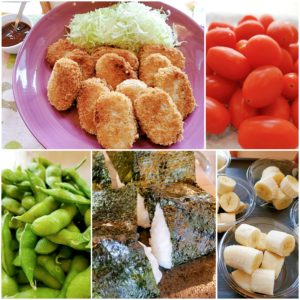 ☆コロッケ☆ミニトマト☆枝豆☆ほかほかおにぎり☆バナナ…お好みでチョコソースをかけて