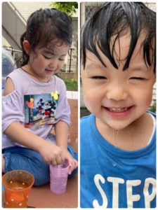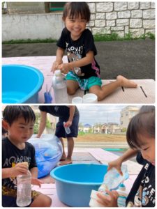 今日は水遊びをしました。