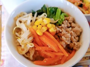 ☆ビビンバ丼は自分でトッピングをしてよそいました(^^♪