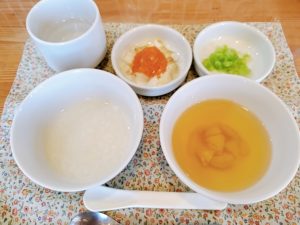 ☆ミルク粥☆さつま芋味噌汁の上澄み☆カレイのおろし人参添え☆やわらかキャベツ