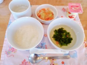 ☆7倍粥☆小松菜のスープ☆鮭のトロトロキャベツ添え☆ベビーダノン