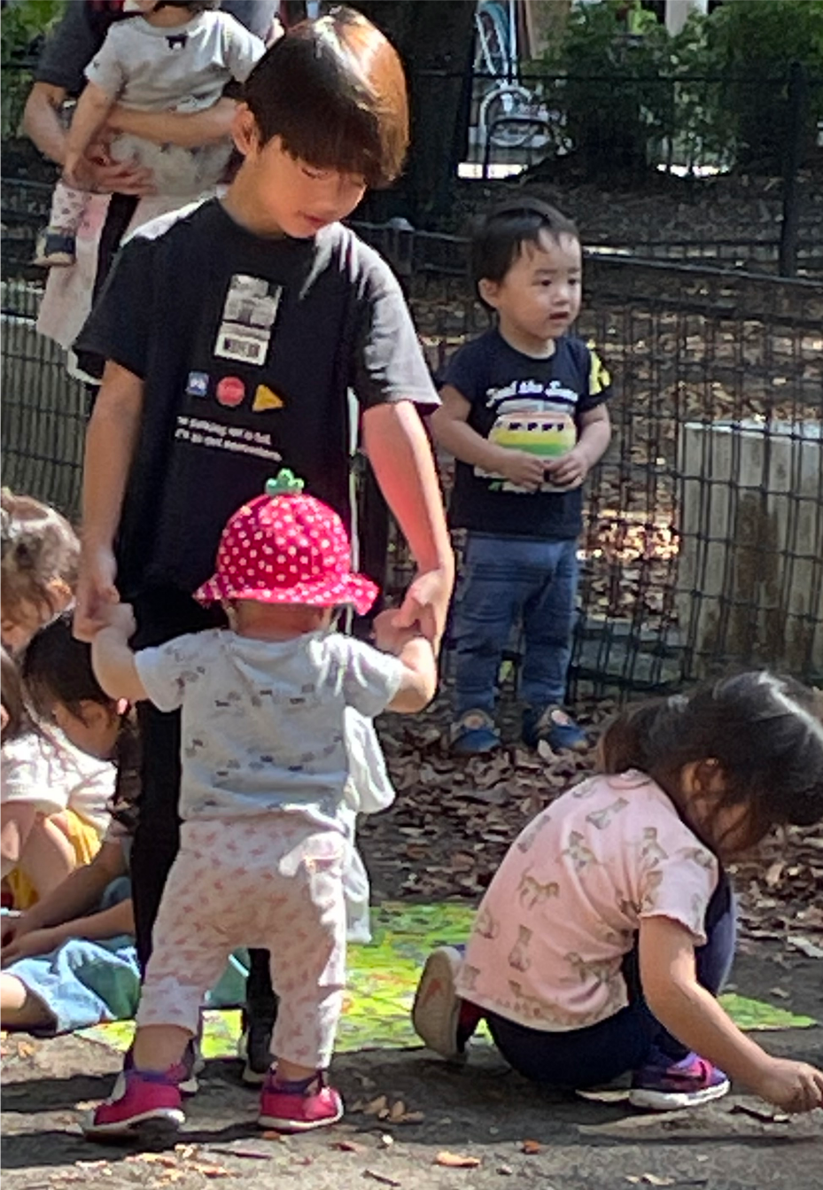 「いっちに・・いっちに・・!!」0歳児の女の子がどんぐりで一番大きいお兄ちゃんと一緒に歩く練習をしていましたよ~!(^^)!