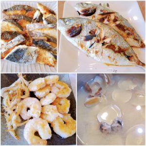 ☆今日のお魚メニュー☆○シマアジの塩焼き○さわらのムニエル○むきエビと白エビのソテー○アサリののみそ汁