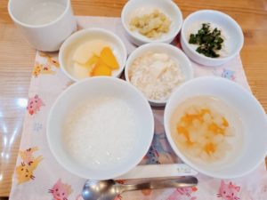 ☆7倍粥☆カブのスープ☆麻婆豆腐☆さつま芋のマッシュ☆小松菜のおかか和え☆りんご.柿