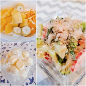 ◎ブロッコリーと小松菜のサラダ◎チーズ◎フルーツ盛り◎野菜ジュース