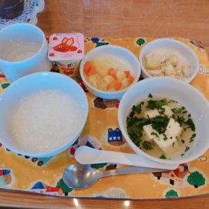 【中期】○7倍粥○豆腐のスープ○茄子の肉炒め煮○秋野菜のやわらか煮○ベビーダノン