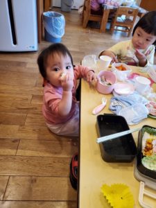 お弁当を作ってもらえた事が嬉しくてモグモグ食べていました♪