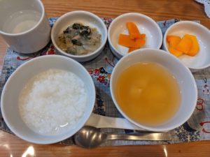 ☆5倍粥☆じゃが芋の味噌汁上澄み☆ツナと野菜煮☆スティック人参☆柿