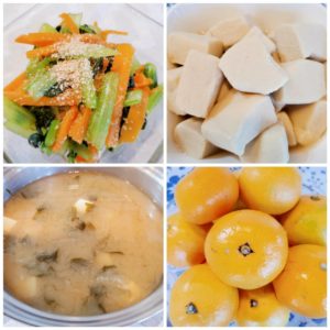 ☆コロッケ☆千切りキャベツ☆ミニトマト☆ご飯☆ふりかけ☆小松菜と人参の胡麻和え☆高野豆腐煮☆大根とわかめと豆腐の味噌汁☆みかん