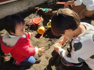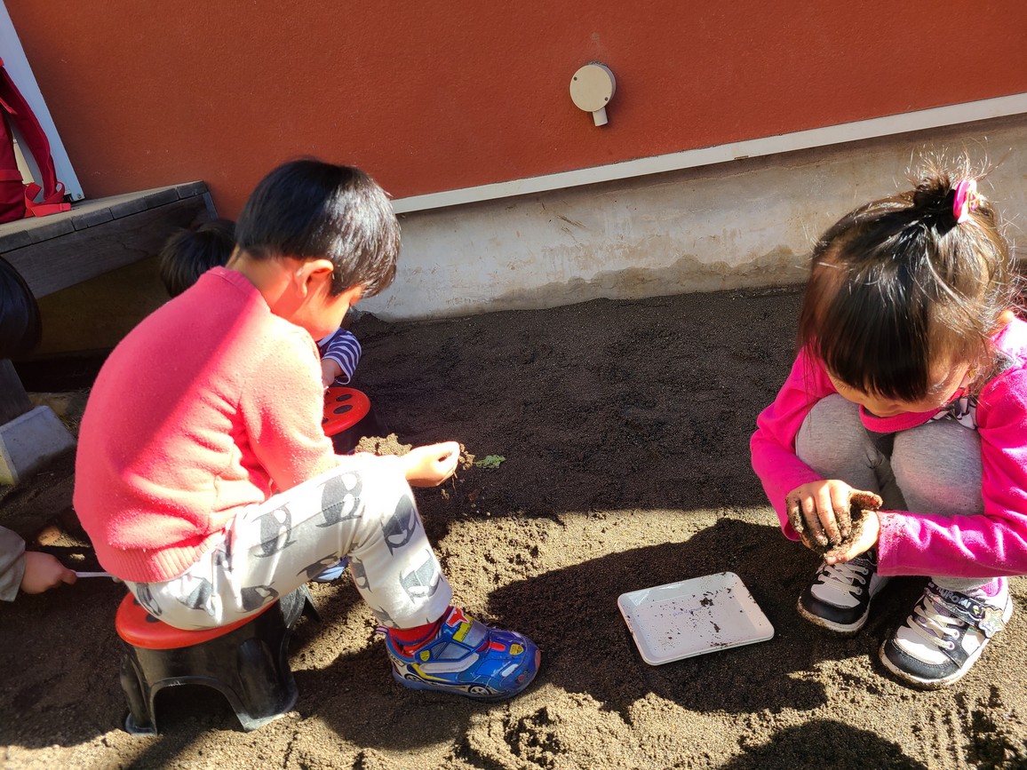 砂場でお団子作りをしたり・・虫探しをしたり・・一人一人がたっぷりと遊び込んでいましたよ♪「ありさん見せてあげるね」「お団子上手にできるかなぁ~」
