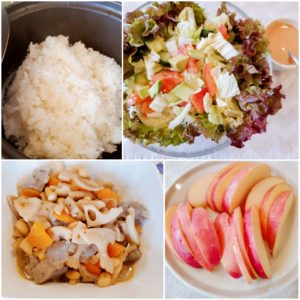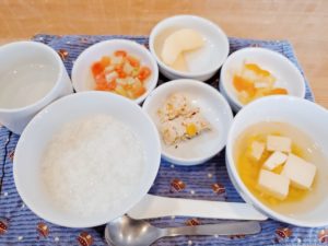 【中期】☆7倍粥/5倍粥☆豆腐とコーンのスープ☆ミートローフ☆人参と白菜のだし煮☆トマトと胡瓜のサラダ☆りんご