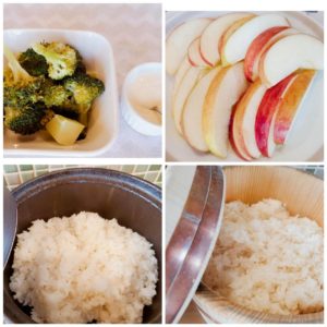 ☆茹でブロッコリー☆玄米入りご飯☆りんご