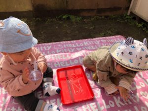 遊び途中、”暑いから脱ぐ”と自分で調節をしながら遊びました😊