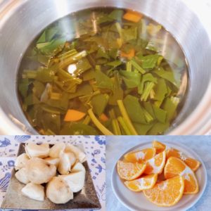 ☆ほうれん草のスープ☆蒸かしじゃが芋☆みかん